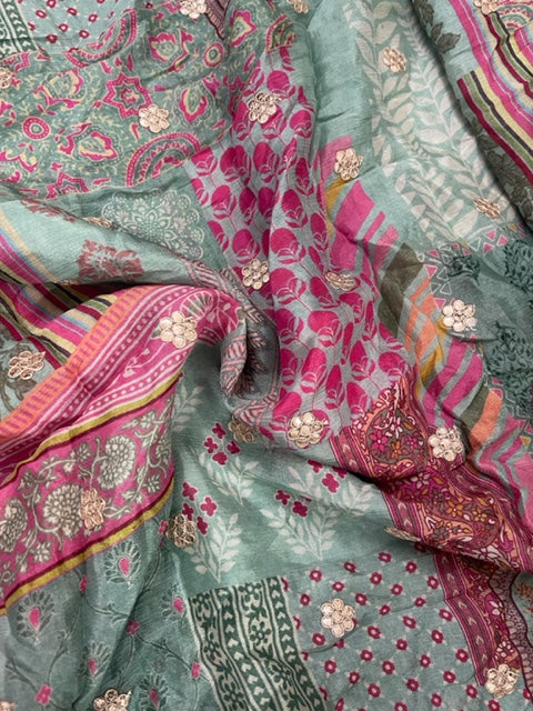Embroidered chiffon fabric, Sequins fabric, Wedding dress, Wedding inspiration, Floral design, Royal fabric, Indian fabric - NFAF408