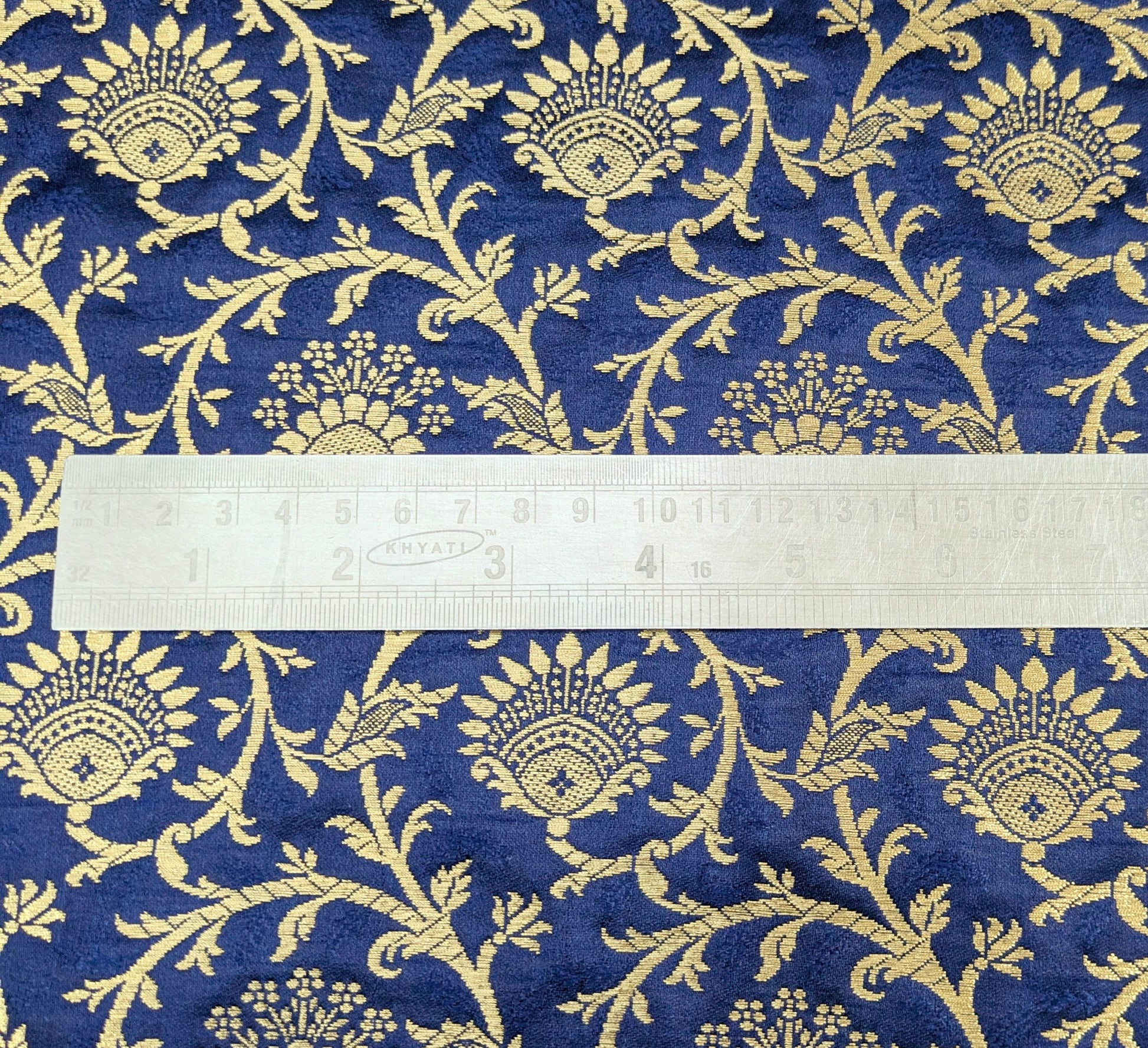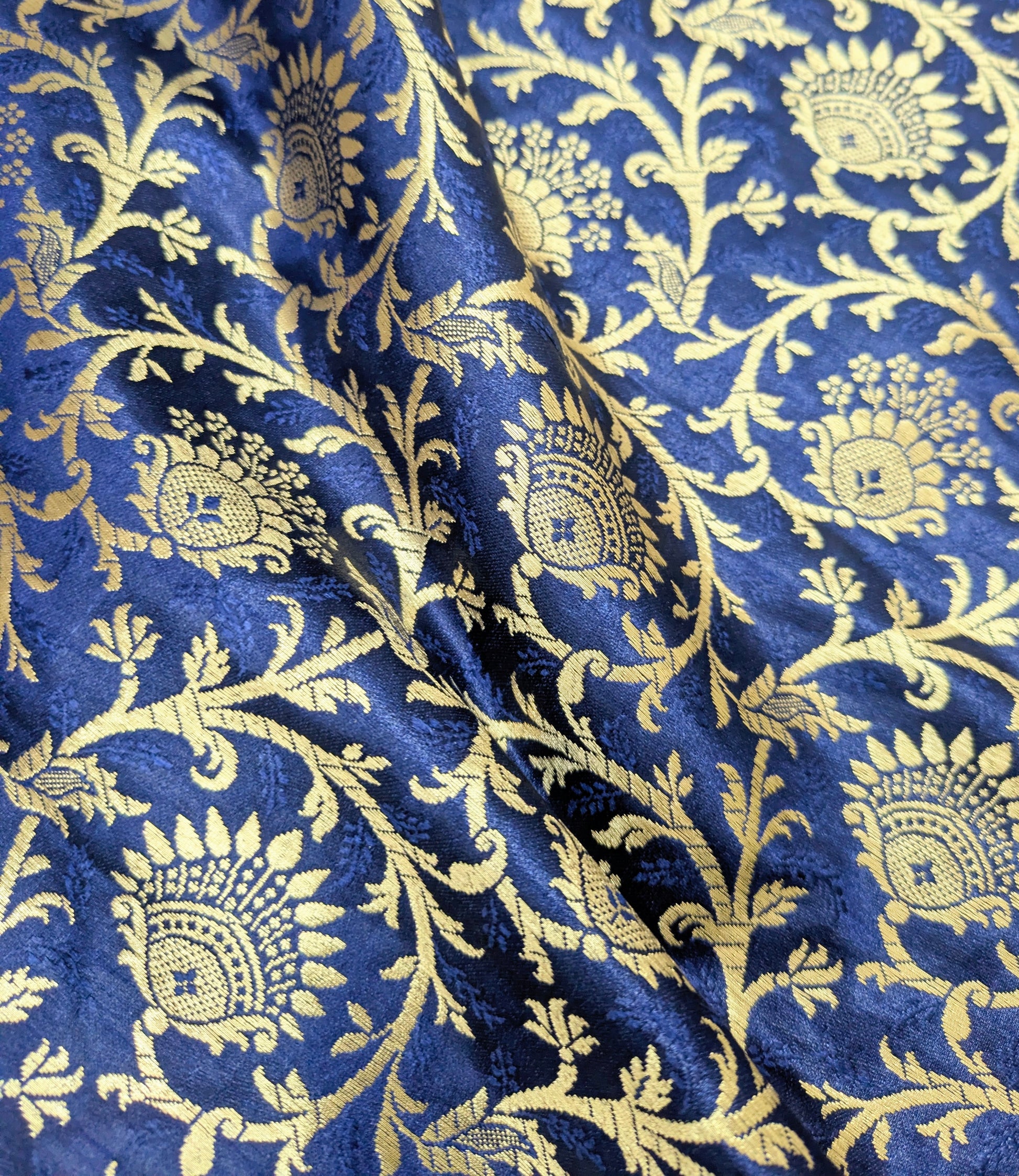 Brocade Fabric, Navy Blue Gold Damask Jacquard Brocade Fabric Upholstery Indian Dress Festival Wear Brocade Fabric by the yard/meter - NFAF891