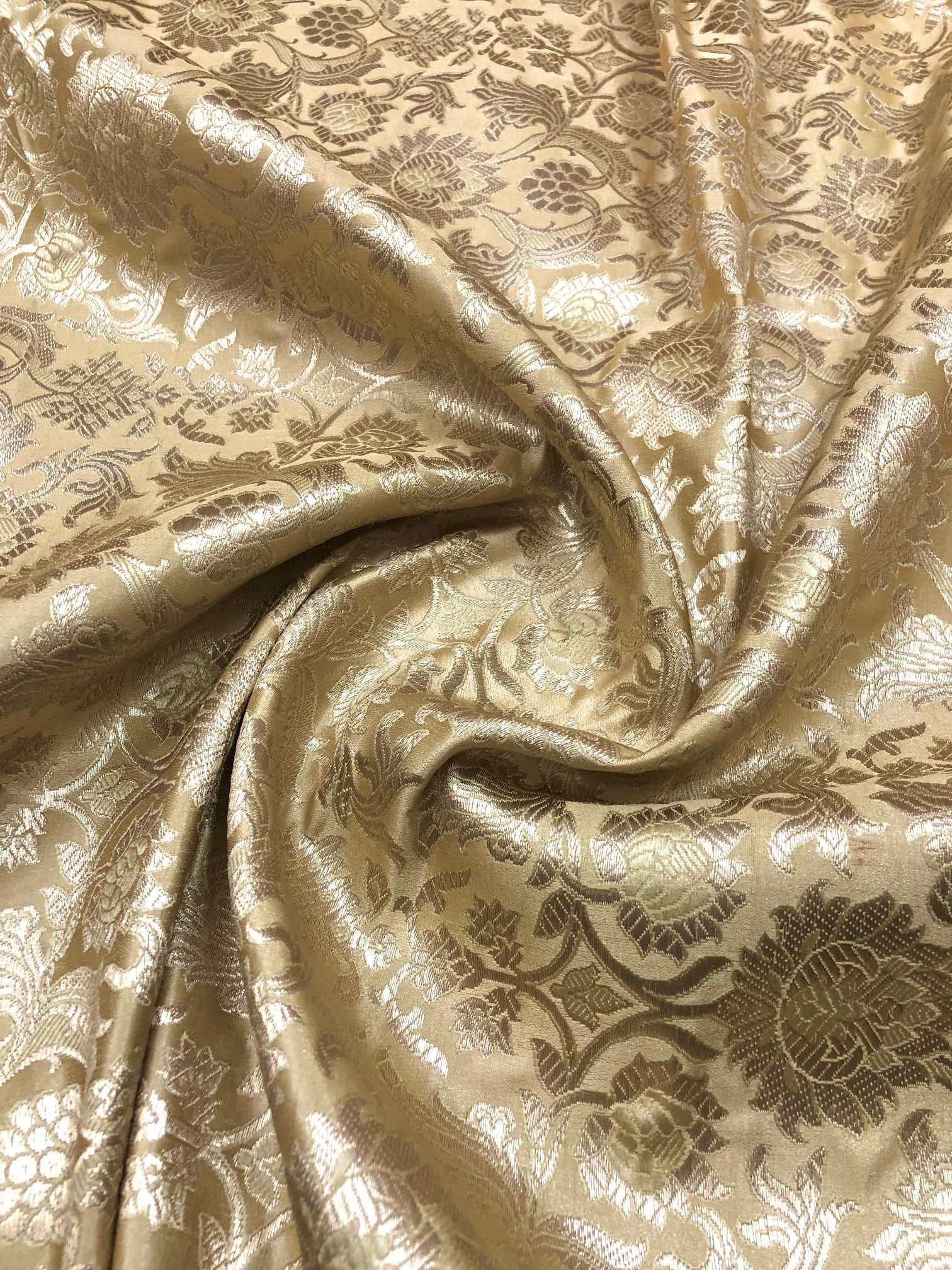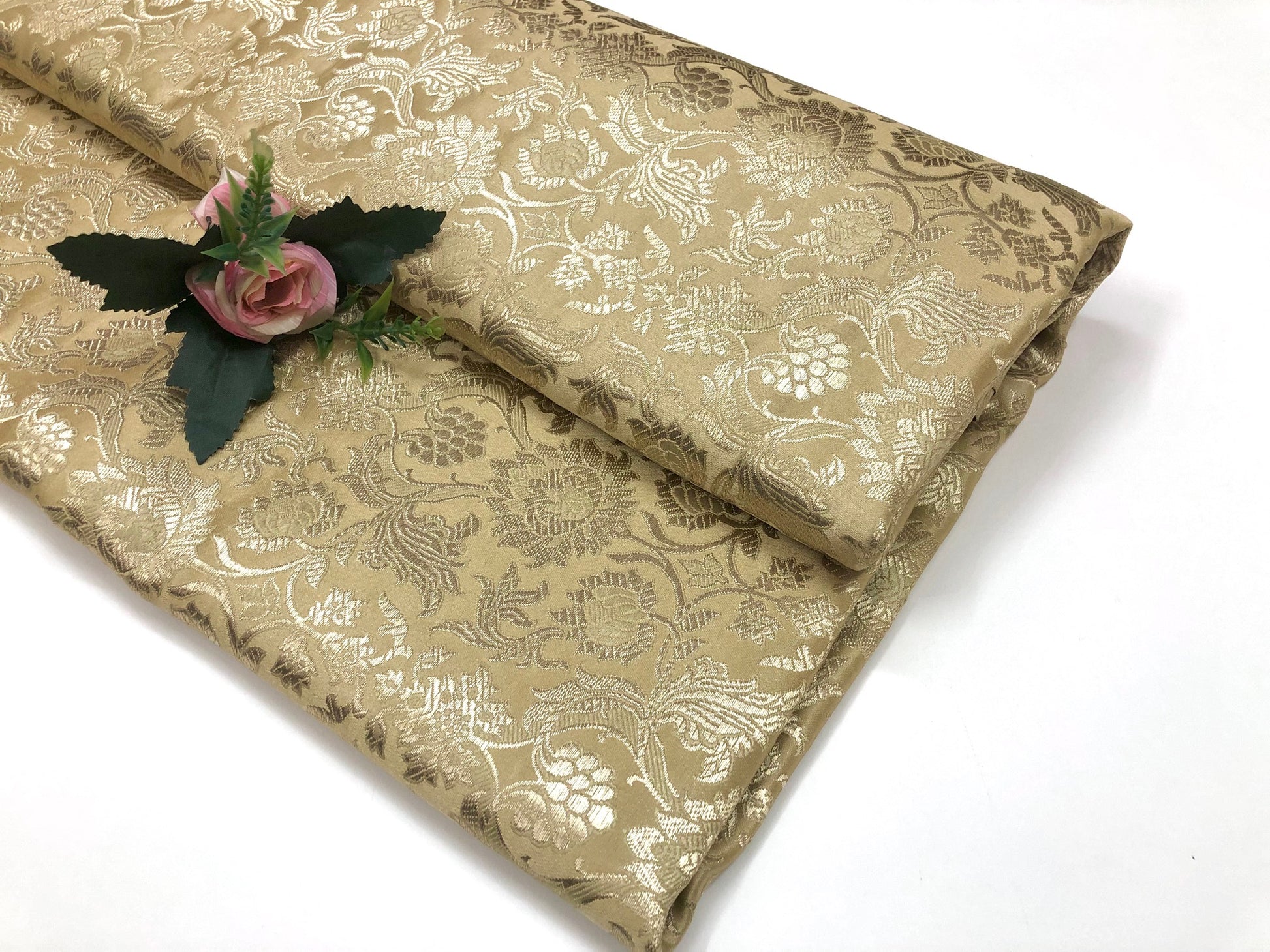 Brocade fabric Beige Gold Jacquard Damask Rayon Silk brocade Fabric Wedding Bridal High Grade Designer fabric by the yard Material