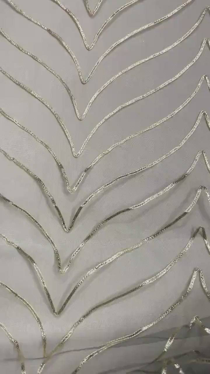 Embroidered fabric Wedding dress Bridal Net tulle fabric Gold Lace Embroidery fabric Gold Gotta Patti Border Indian fabric by the yard