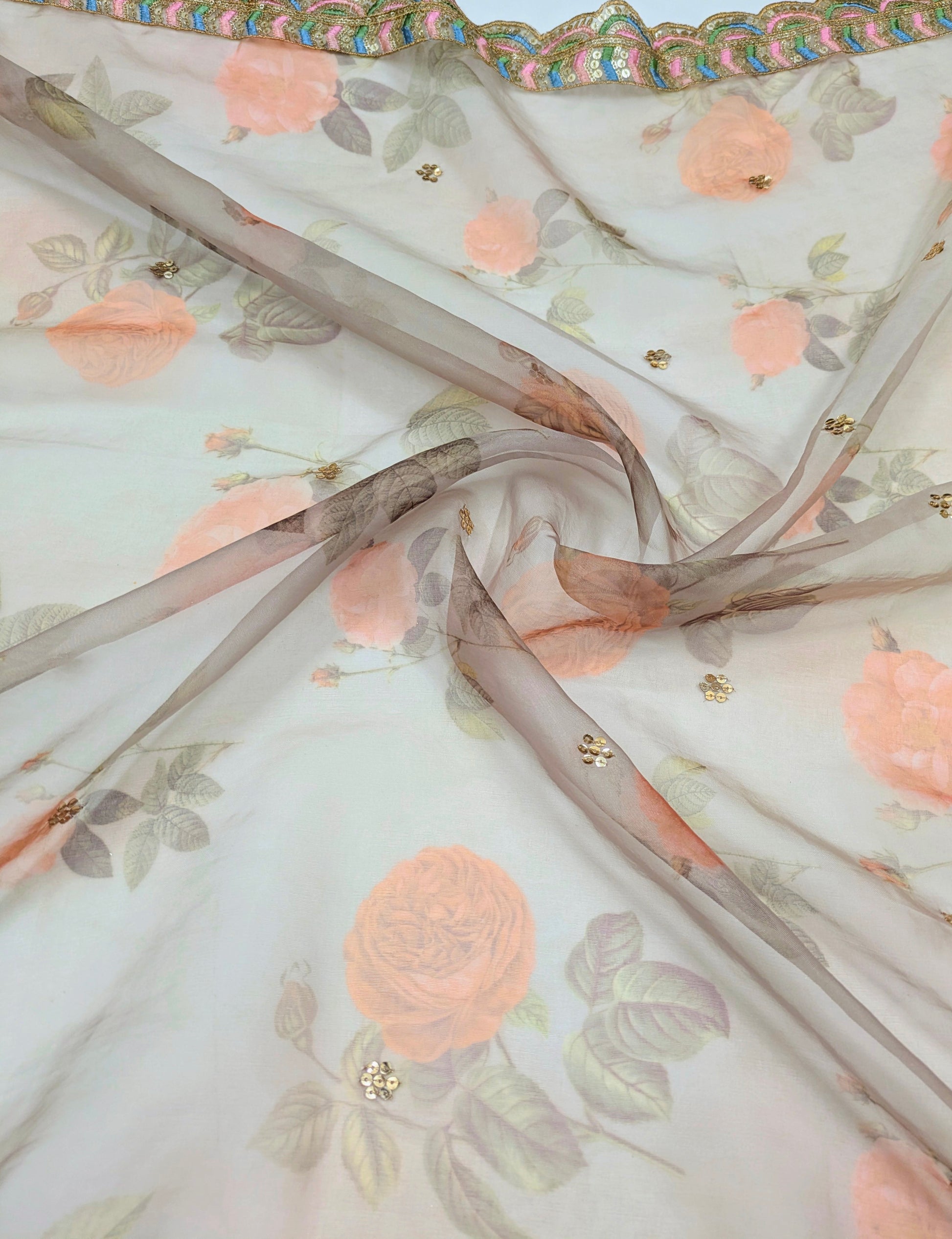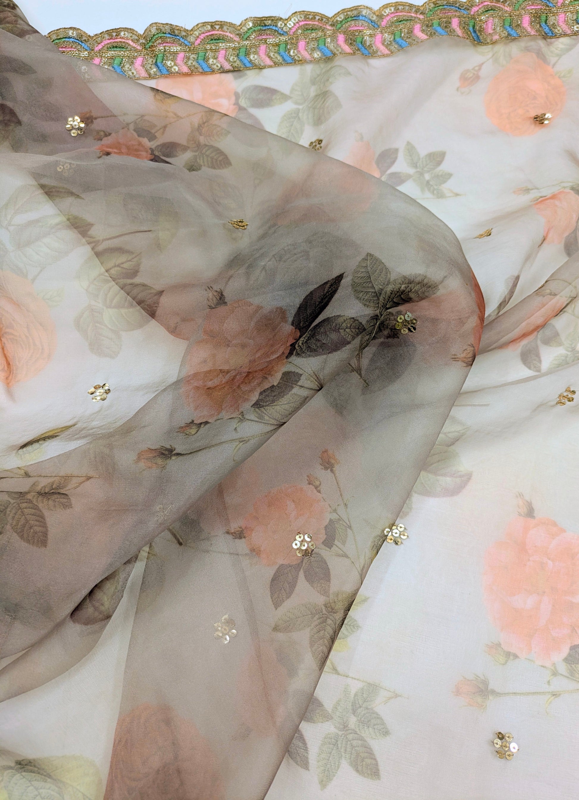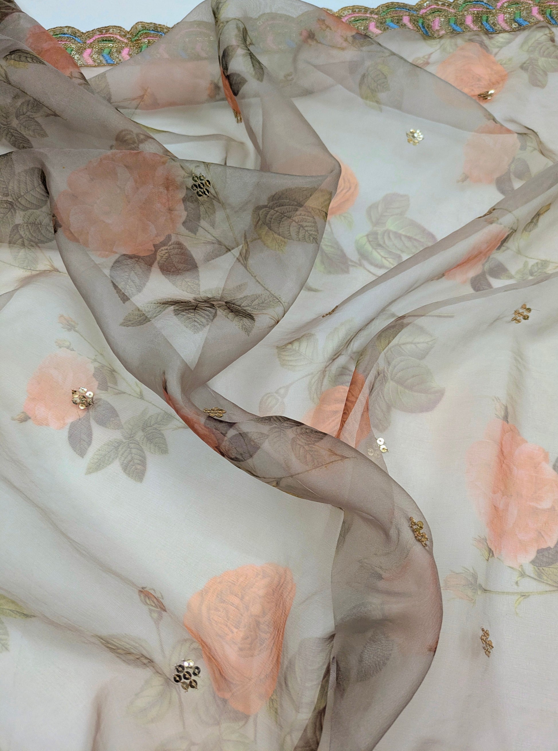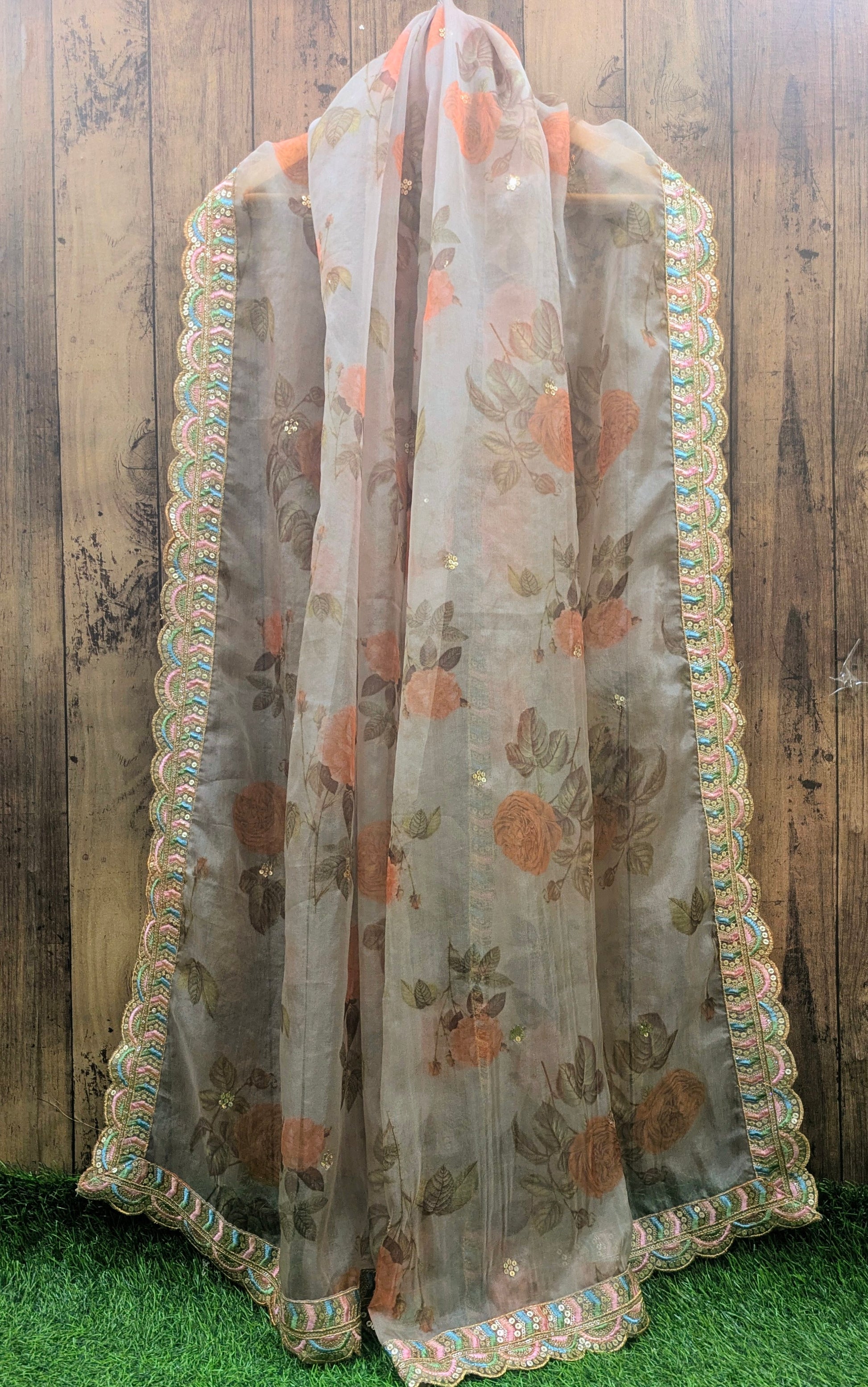 Gray Organza Dupatta and Sequins Embroidery, Indian Stole, Scarf for women, Bridal Wedding Fabric, Veil, DP22