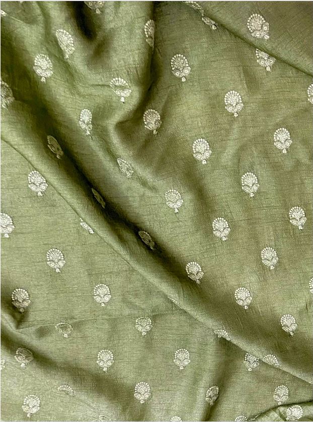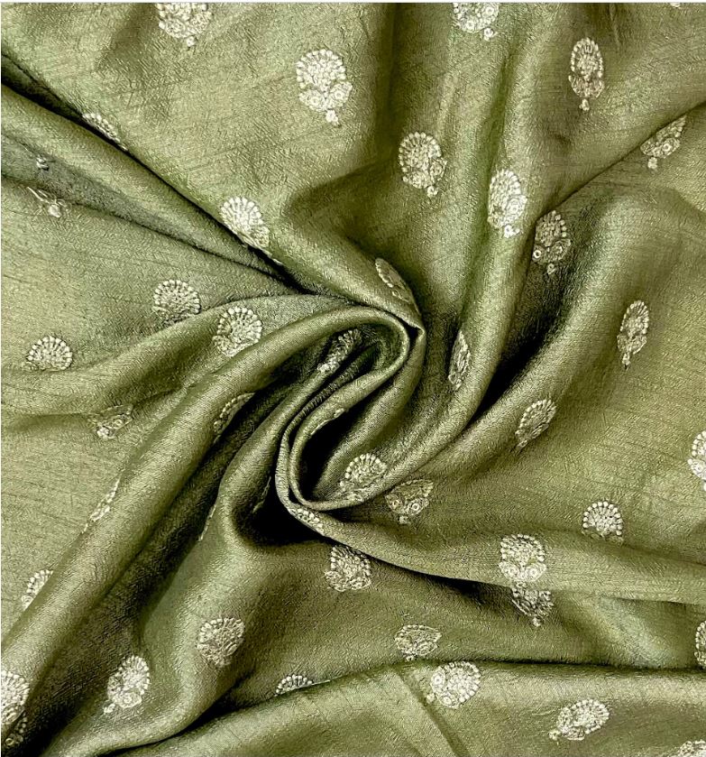 Green and gold embroidered fabric, Bridesmaid dress, Thread embroidery, Wedding dress, Luxury fabric, Vintage fabric, Haute couture, Handmade - NFAF556