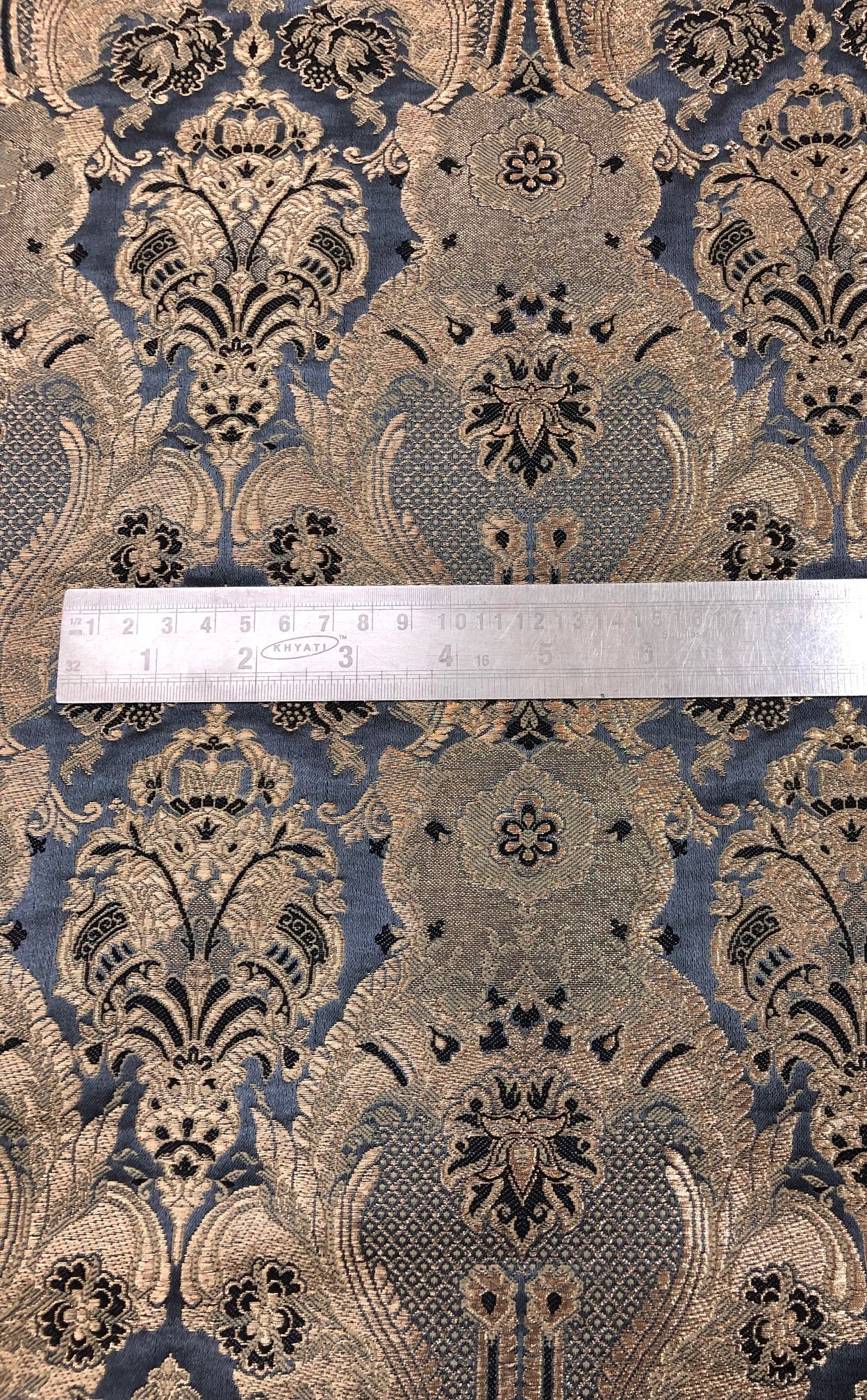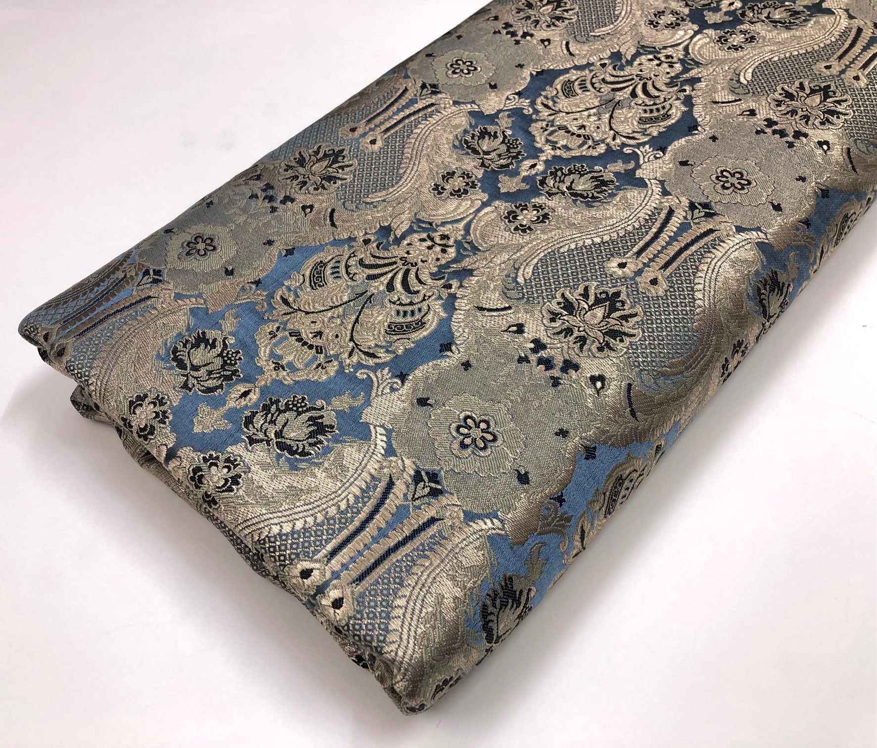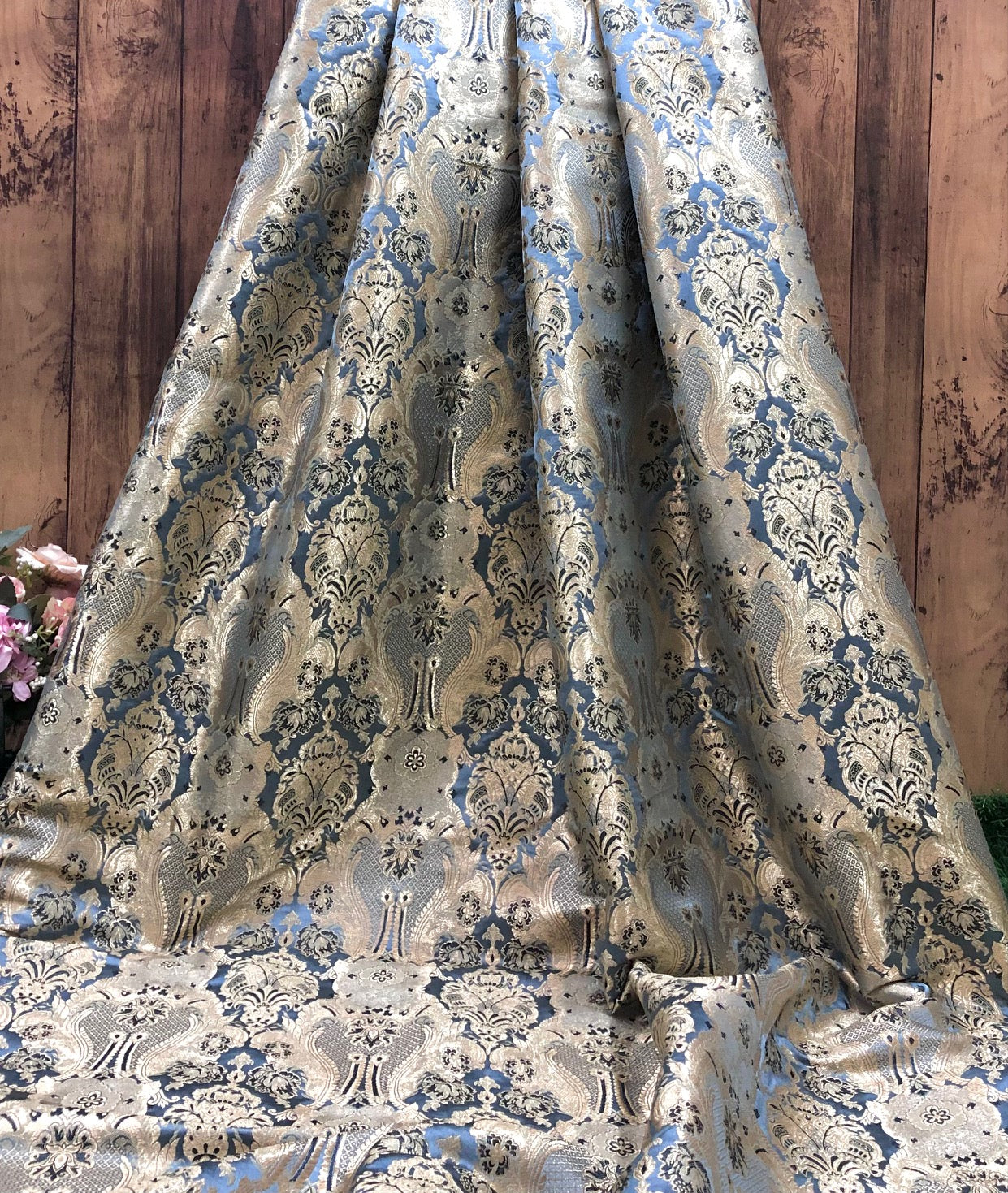 Indian Brocade fabric Jacquard damask fabric Gray Gold fabric Wedding bridal fabric Luxury dress fabric Upholstery fabric by the yard