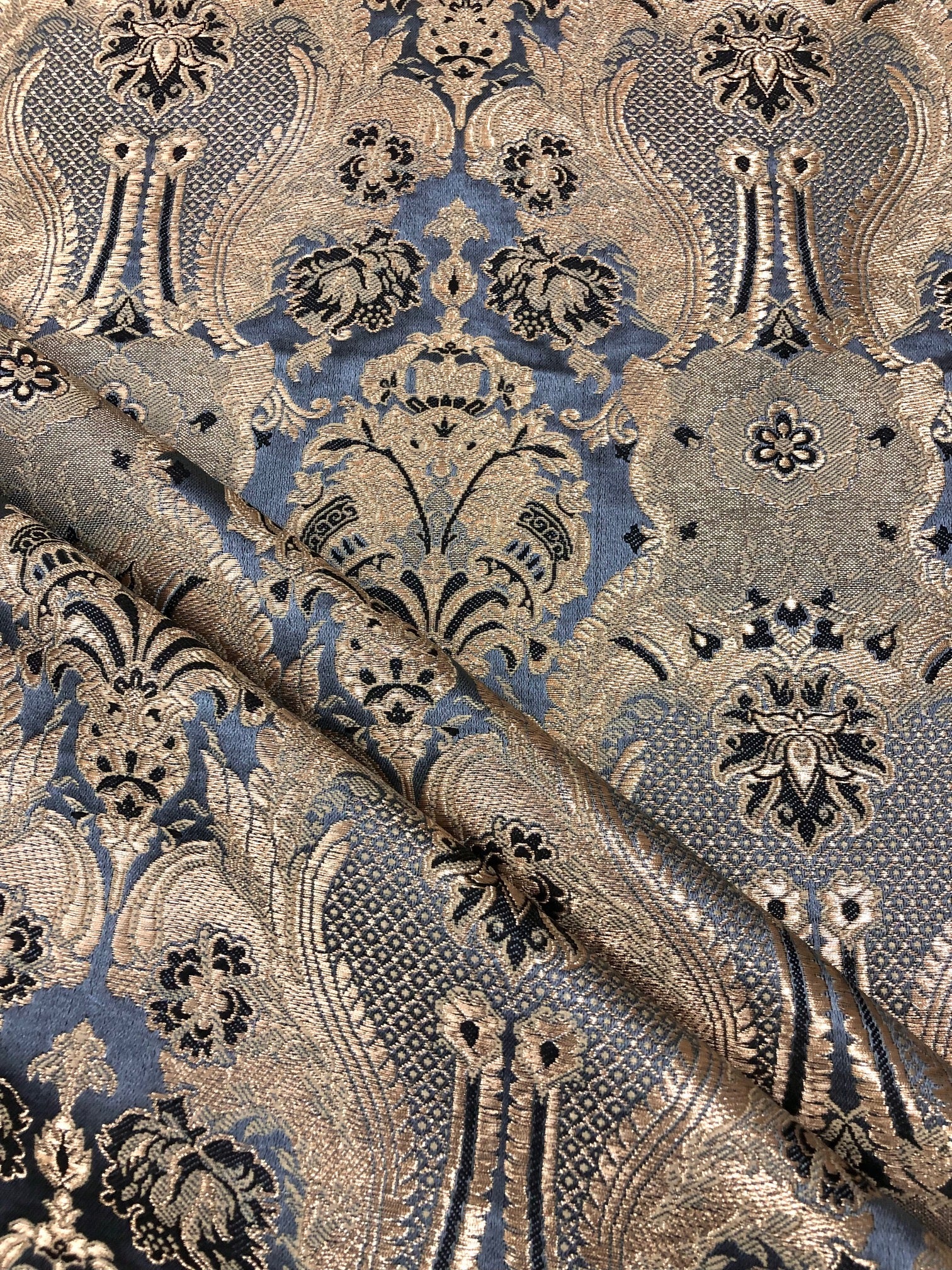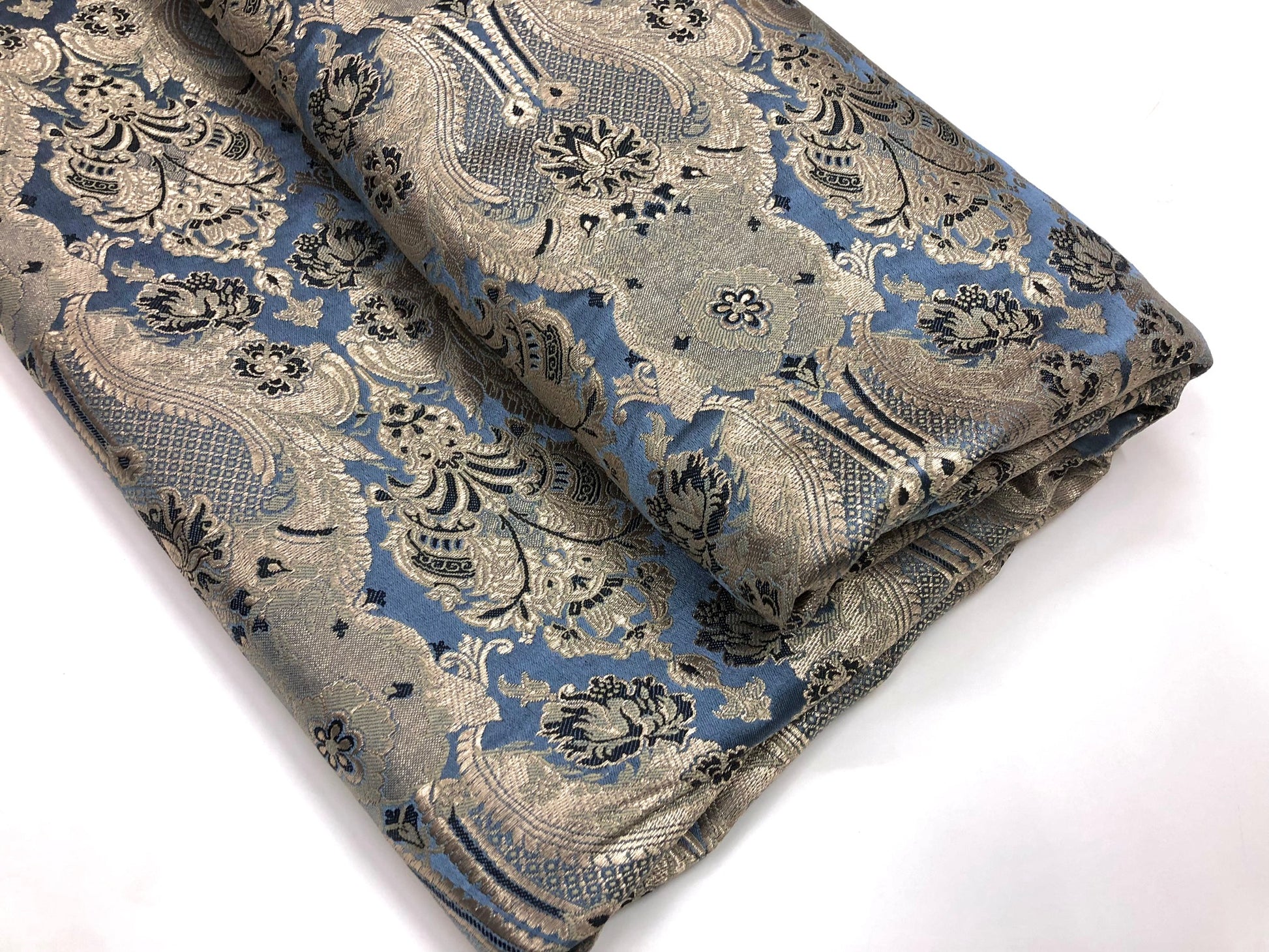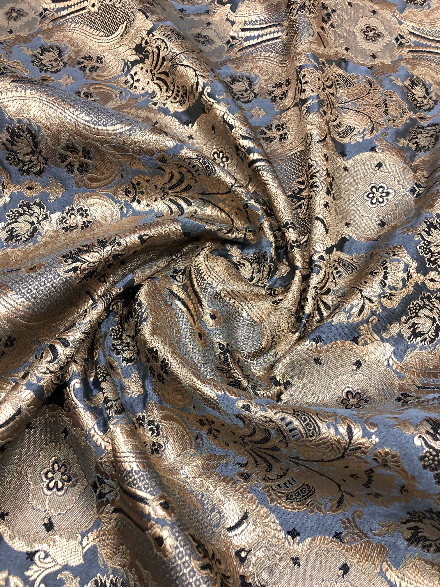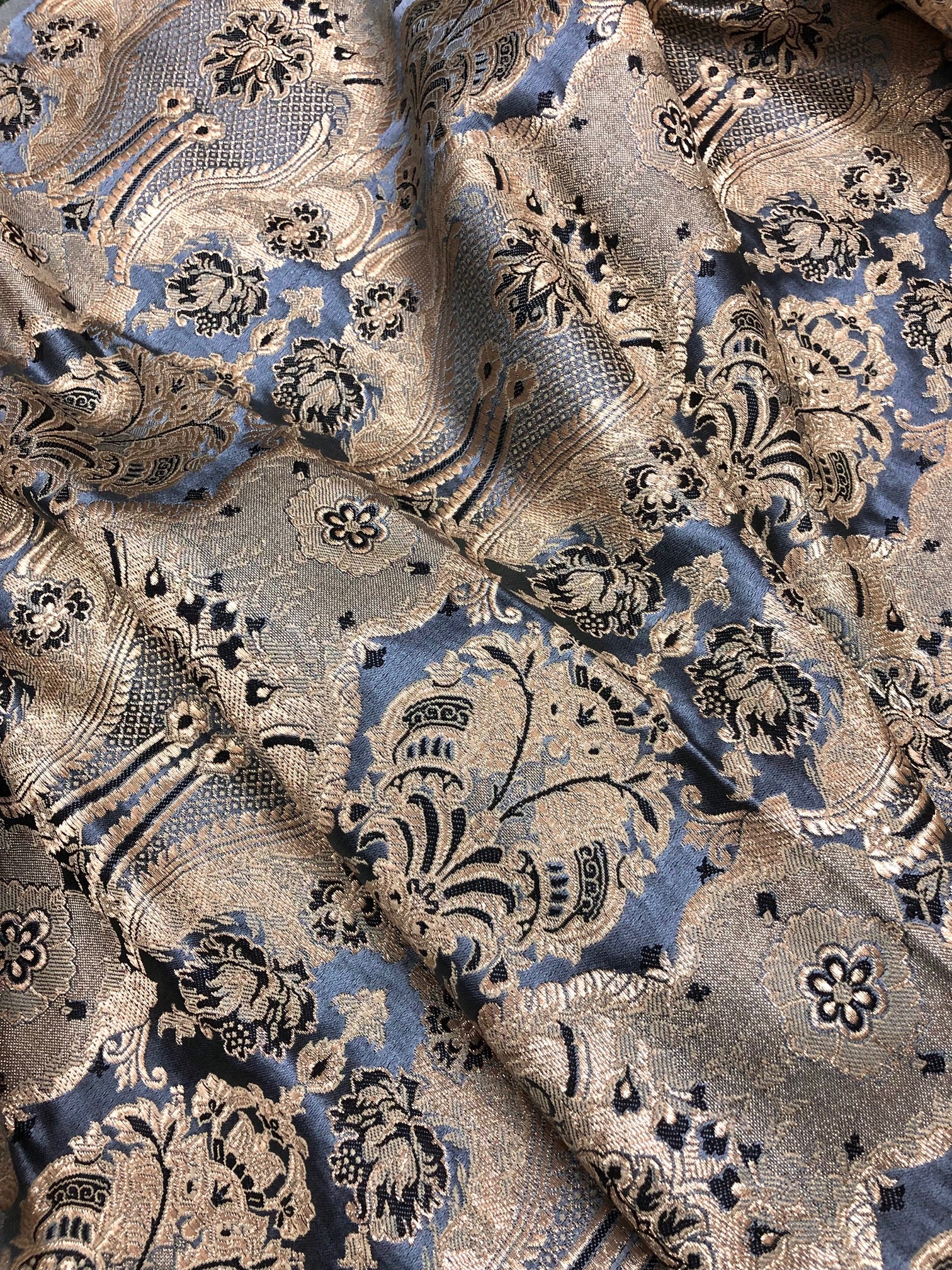 Indian Brocade fabric Jacquard damask fabric Gray Gold fabric Wedding bridal fabric Luxury dress fabric Upholstery fabric by the yard