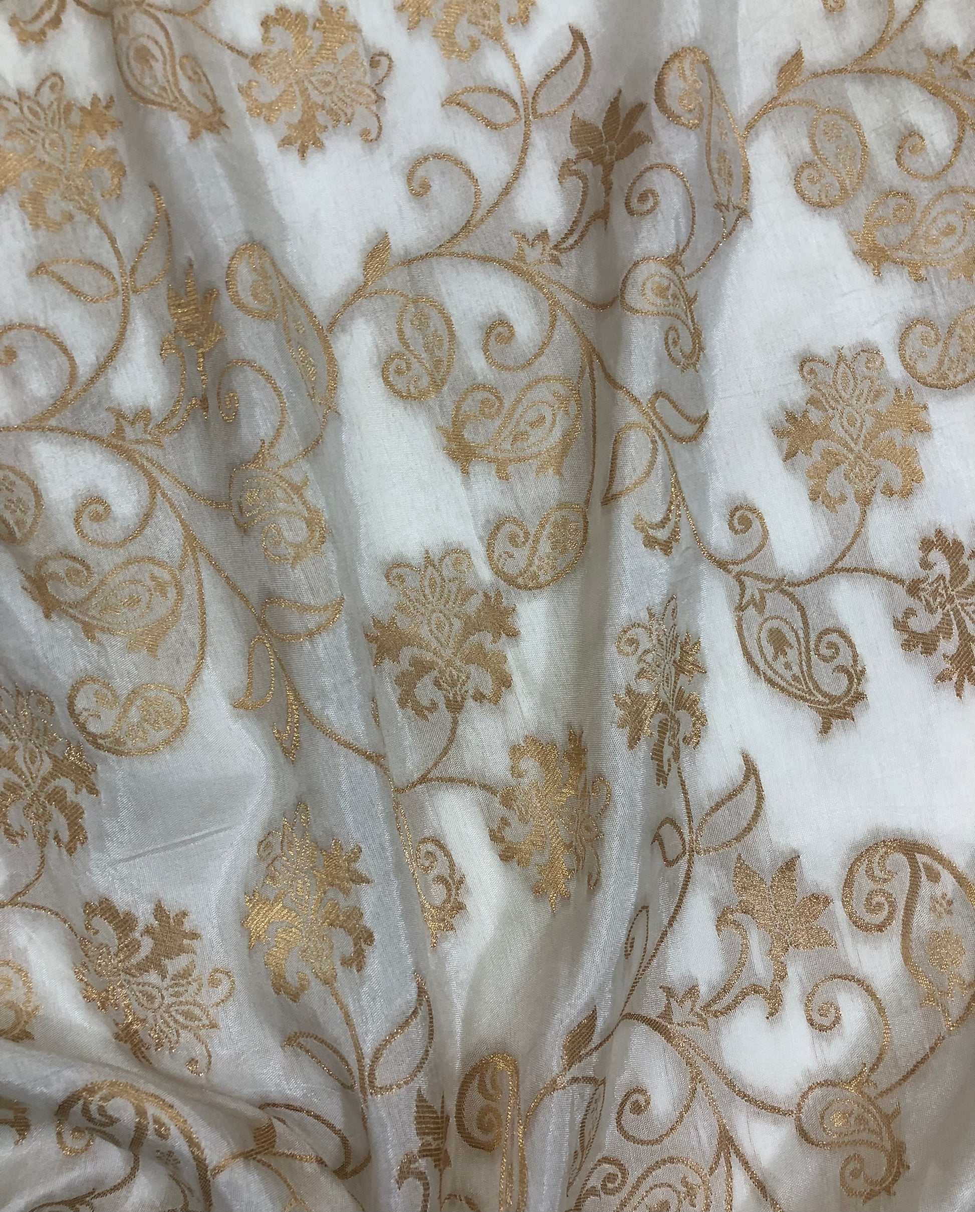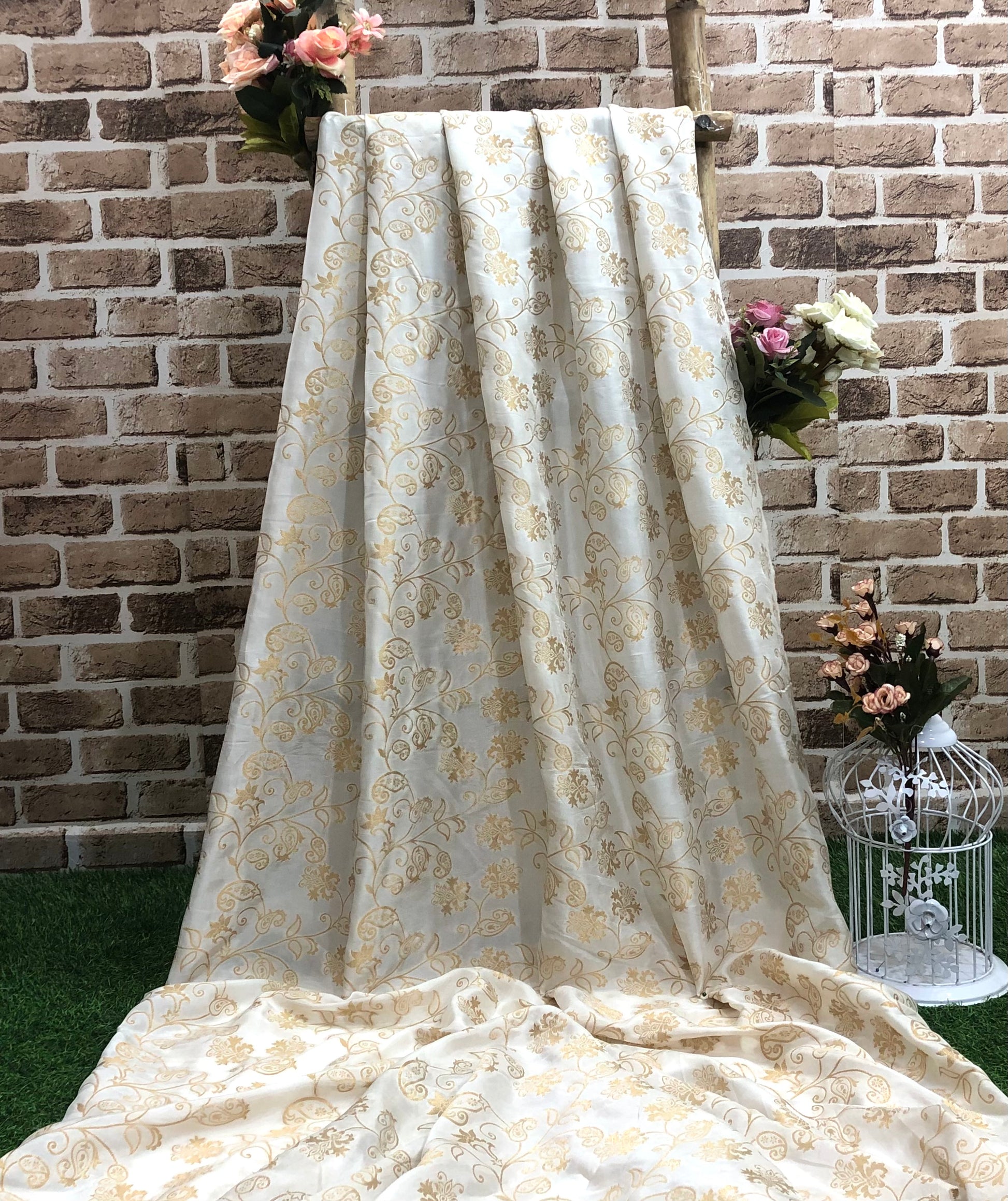 Off white Gold Brocade Silk Fabric Dyeable fabric Jacquard Damask fabric Wedding dress Luxury fabric Home Decor Fabric by the Yard- NFAF862